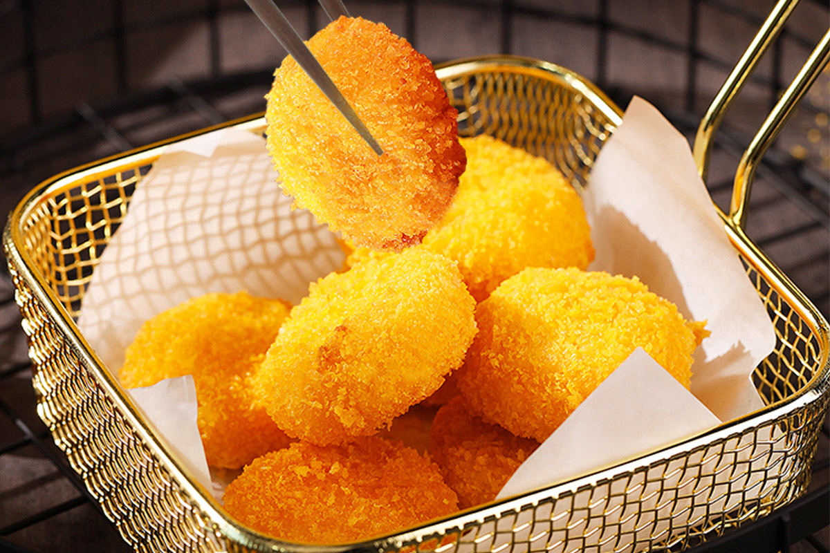 2020-09-23|閱讀數(shù):243原料:南瓜、糯米粉、雞蛋、植物油、紅糖、生粉、面包糠。制作方法:1、南瓜削皮,入鍋蒸熟,攪打成泥;2、南瓜泥加入糯米粉、少許紅糖,攪拌成絮狀,揉成南瓜面團(tuán);3、將南瓜面團(tuán)冷藏20分鐘,鋪薄層生粉,裹上蛋液,蘸面包糠...... -